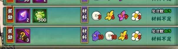 每日给三个好友浇水,有20金币、100忍玉,白天接时间短的牵牛花和蒲公英。