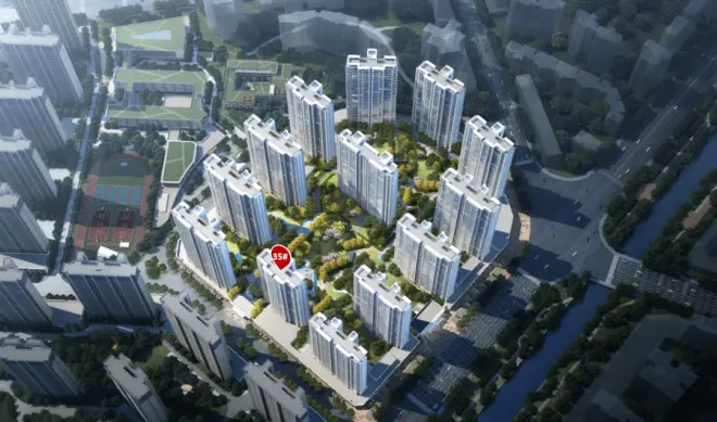 D区鸟瞰图金辉地产石狮金辉城35#楼头排央景建面约111m²户型,以特殊的楼栋位置优势及方正的户型设计深得市场客户的喜爱。