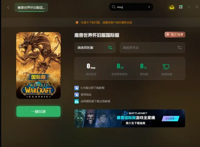 如果您在魔兽世界怀旧服中遇到了延迟高、游戏卡顿、掉线或卡蓝条的问题,很可能是由于网络连接不稳定所致。为了改善网络连接并减少这些问题的发生,您可以尝试使用加速工具。奇游加速工具是一个不错的选择,它可以提供稳定而流畅的网络连接,有助于解决游戏中的网络问题。