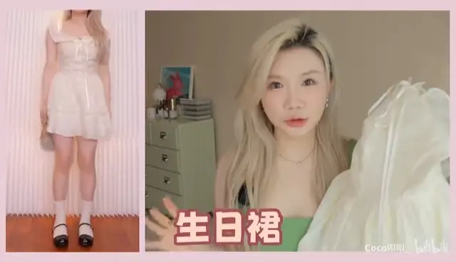生日公主裙。惊艳感,适合出去拍照,香草色底色,显得人清纯干净,气质柔和。荷叶领飞边,可以修饰副乳和手臂肉。领口有缎面织带蝴蝶结,质感很好。上半身是斜向打条设计,显腰细。裙摆微蓬,有内衬和软纱内里,外层裙摆有拼接的半透蕾丝。