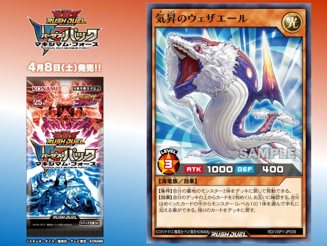 「气升之气象鲸」,罕贵是N,3星、光属性、海龙族、效果怪兽,攻击1000守备400。自循环+翻10星,卡组里面的10星都是极大。正常向的海龙卡组也可以挂点10星。卡名后面是Weather和Whale的生造词。