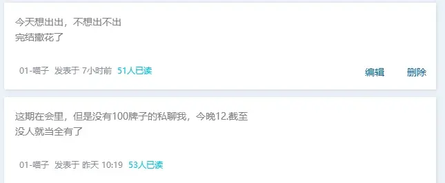 我这期选择坐牢不交号也有个原因,就是最少50%的人看到自己的号被代完就不来了,原地消失,太秀辣。