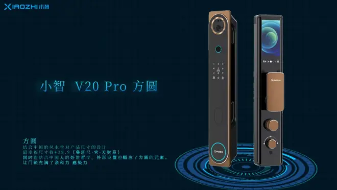 本次发布会的第二款新品是小智V20 Pro方圆,也是一款软硬件配置均达到业内天花板级别的门锁。