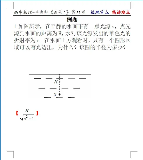 同学们好!高二的“高中物理-吕老师”视频课程《选修1》第四章 光 正在更新,现把该章的学案文本发布出来,供大家学习时对照阅读、完整保存。