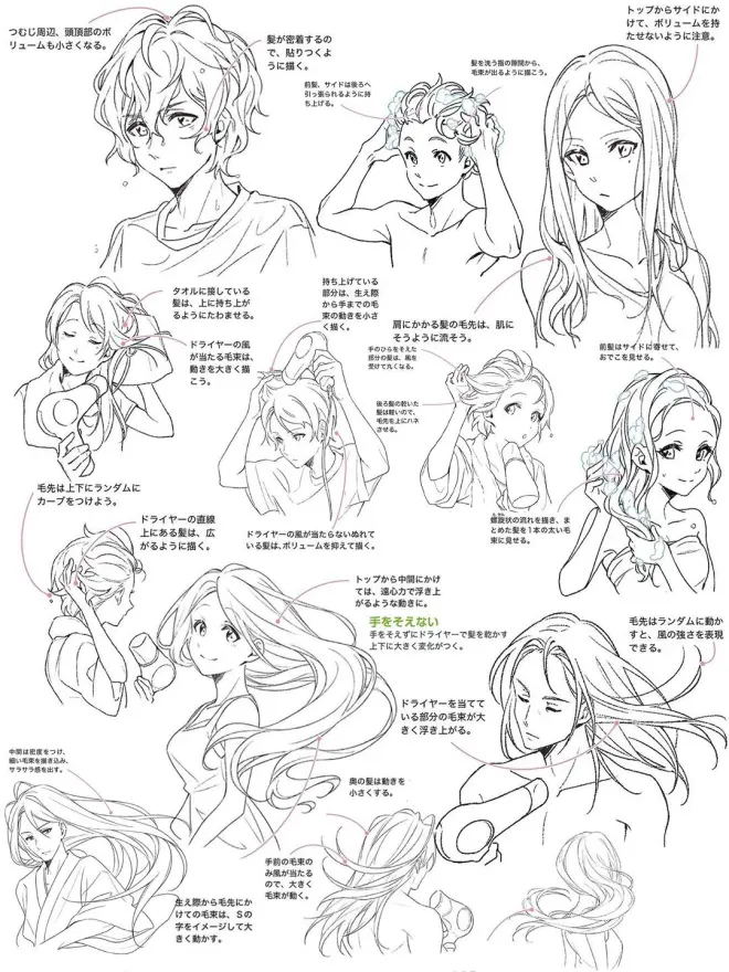 会画散下来的头发,绑起来的头发,甚至双马尾或者麻花辫都会画