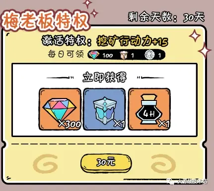 68元买一个7级宝石,在不计算其他资源的情况下,就已经比你花30元买挖矿特权划算的多。