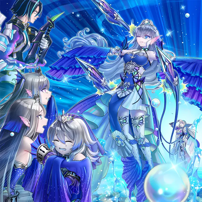②:水族「泪冠哀歌」怪兽被效果送去自己墓地的场合才能发动。从卡组把1只4星以下的水族怪兽送去墓地。这个效果把「泪冠哀歌」怪兽以外的怪兽送去墓地的场合,这个回合,自己不能把这个效果送去墓地的卡以及那些同名卡的效果发动。