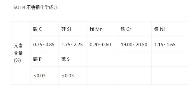 SUH4对应国内材料80Cr20Si2Ni、8Cr20Si2Ni、S48380马氏体不锈钢。SUH4由铬、镍和铝组成。SUH4用于高温设备、炉具、炼油化工、核能和化工设备等领域。例如制造高温炉、管道、炼油化工反应器、核电站设备等。其高温强度和耐腐蚀性使得它在高温、腐蚀性环境下表现出色,因此被广泛应用于需要承受高温和腐蚀性介质的场合。