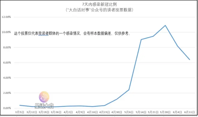另外由于投票样本有偏差,该比例的下降幅度,跟每周正在二阳的比例是不相符合。