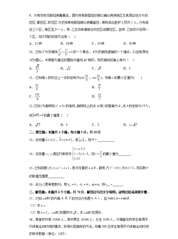 文末点击在看,“高中试卷站 ”公号后台回复“试卷”即可获取电子试题及答案!