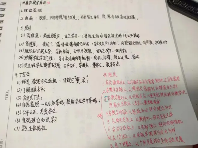 北师大科学与技术教育上岸学姐:我用回忆法争取能够把每一个知识点以题目的形式背出来,不会拘泥于讲义,我已经形成了自己的答题思路。对于一些题目,我也会自己查文献完善答案,比如,发展性教学原则。