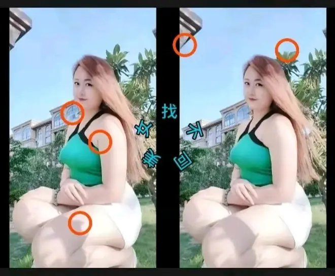 3:找出两张美女图片中五处不同,答案显示在最后面