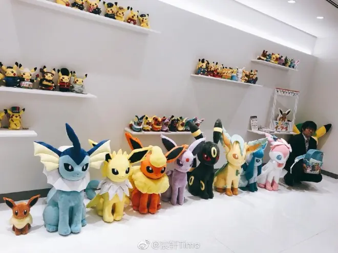 这一套17年PC中心的等身伊布家族可以说是伊布厨毕生的追求,每只伊布进化型基本上都有接近1米高,排成一排真的非常之爽