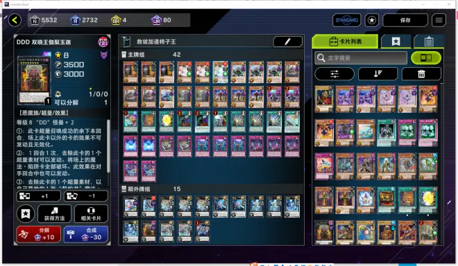 这套42卡的构筑上手非常均衡,很少卡手(我玩救祓一直是42卡,可以有效减少同名卡复数上手,纯个人经验感觉,有个人两三百场实战数据支撑,但未经数学理论验证,爱信不信由你,别抬杠),如果卡手的话一般都是手坑上手了,可以试着拦停。