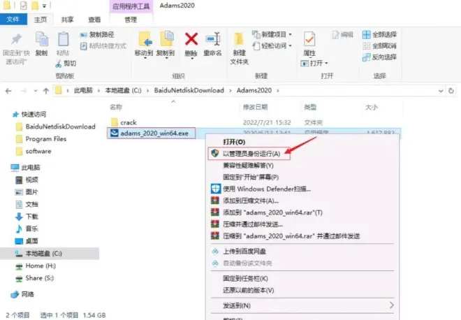 21.双击打开解压后的【Adams2020】文件夹,鼠标右击【adams_2020_win64.exe】选择【以管理员身份运行】