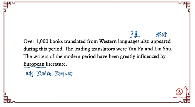 本段翻译:这一时期还出现了1000多本从西方语言翻译过来的书籍。主要的翻译家是严复和林纾。现代时期的作家受到了欧洲文学的巨大影响。