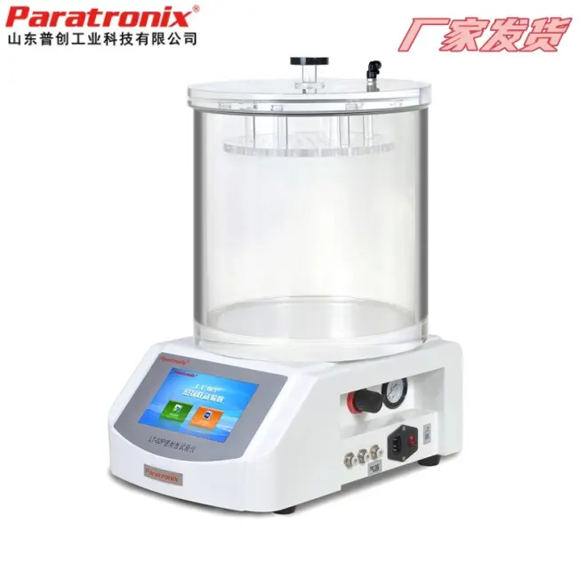 山东普创工业科技有限公司研发生产的色水法密封试验仪采用彩色触摸屏控制,让操作更加简便,数据结果更加直观;试验过程全自动,一键完成测试;内置高精度传感器,反应更快;超厚有机玻璃真空室;测试组数自动累加,可统计测试数量;真空度自动保持及反吹卸载;梯度增压模式更人性化;实时停机,保压时间、精度更高。