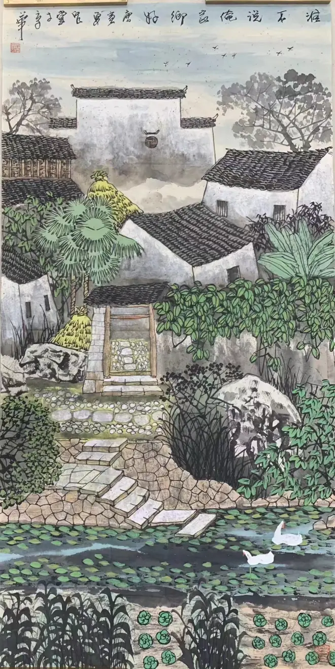 吴泉棠描绘的家乡是独属于江南的婉约与淳朴,池塘、鸡鸭这些日常所见在其笔下生动的呈现,让我们看到一幅幅自然鲜活的江南人日常生活的画面,那种安宁的氛围、古朴的诗意让观看的人心生向往。