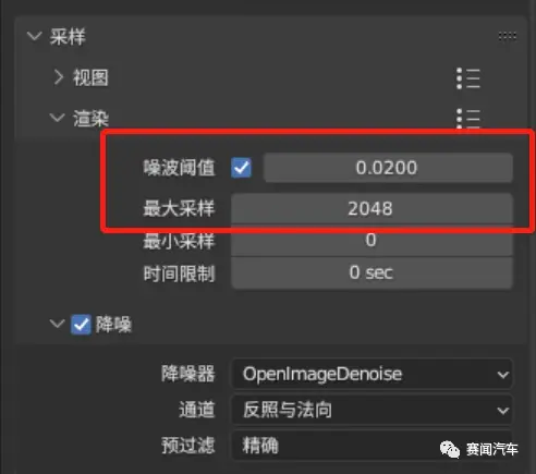 因为,从逻辑上讲,如果进一步增加噪波阈值,渲染结果可能会变得更糟糕。为了验证比较,我们可以尝试一下0.05的数值进行测试,是的,渲染速度是会变快,但是渲染结果也会变得更糟糕。
