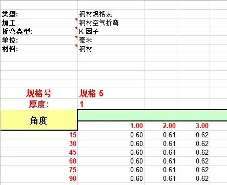 这里就是用K因子是描述中性层的位置。K因子:中性面距内折面/厚度,即t/T随便说明下,中性层是变化的,不同厚度和半径中性层的位置也会变化的。