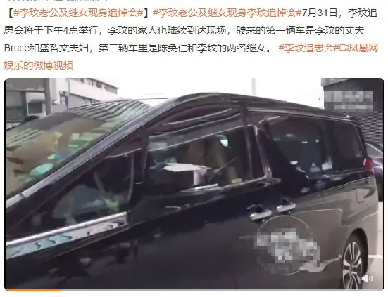 除了李玟的家人外,他的老公Bruce以及两名继女也来到了追思会现场,由于他们坐在车内,媒体并没有拍到Bruce和女儿的正面照。