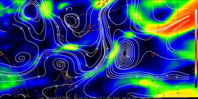 北京时间8月15日20时,强热带风暴兰恩的气旋中心位于辽宁省铁岭市东南方,也就是在东经134.70°,北纬35.90°上。目前风力10级(25米/秒),风力已经减弱。兰恩结构松散,对流发展转弱。高空辐散+5~+10,其中西侧+20,高空辐散稍为增强;低空辐合+10~+15,其中南侧+20,低空辐合稍为增强;风切变-10,兰恩未来所经之处的风切变条件转差 ;目前兰恩近海的海水温度29°C(未来兰恩所经之处的海水温度大致保持在27~29°C),为台风的增强创造条件;气旋中心正涡度不变。位于北太平洋上空的冷涡逐渐北抬,强度不变;受冷涡的影响,西太平洋副热带高压逐渐东退、北抬;之前位于巴士海峡上空的副高高压区逐渐北抬。目前兰恩向西北偏北方向移动,移动速度为24公里/小时(已经加快),后期会转向偏北或东北偏北方向,移动速度逐渐增大,预计8月18日凌晨靠近俄罗斯库页岛一带海域。