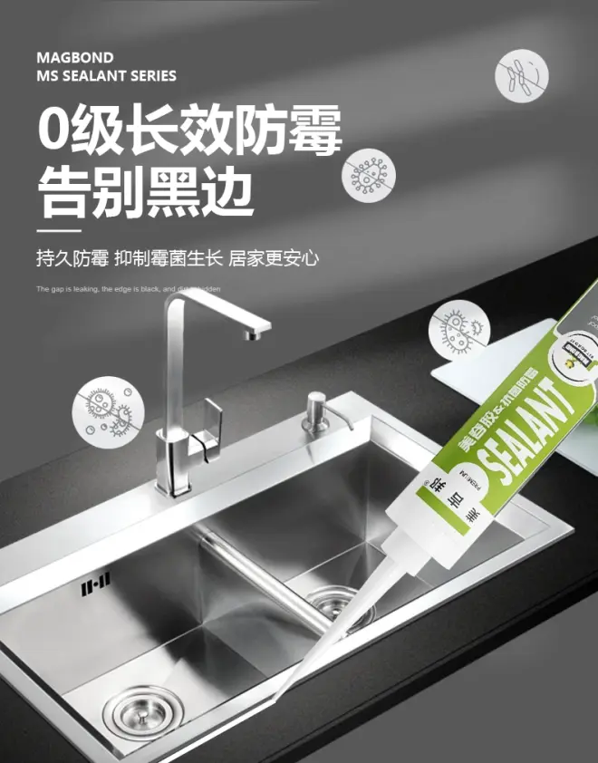 美吉邦醇型美容胶抗菌力强,达到0级长效防霉:普通的玻璃胶或者美容胶使用在潮湿的厨房、卫生间会发生发霉脱落等的情况,不仅影响美观,还会危害健康。美吉邦醇型美容胶相比其他美容胶具有12倍防霉性能,同时对胶体上的微生物具有抑菌的作用,特别适用多种潮湿场景的防霉密封应用。
