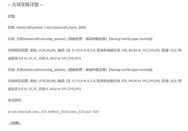 注意,这个方法只对以上提到的一些崩溃有效,也就是Ticking Block Entity、Ticking Tile Entity,在一些案例中是有效的。