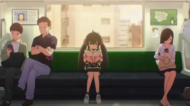 而这种“孤独感”借由电车的空间被放大。此刻的梨沙既脱离家庭外的人际关系,又没能真正回到家庭里,所以她默默地看手机、看书,构图上也设置出她与路人的微妙距离。