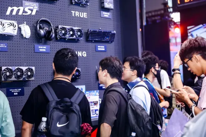 在电竞体验区,准备了五台由微星GeForce RTX 40系列显卡打造的高性能主机,现场小伙伴们可以尽情地体验到全新的NVIDIA Ada架构带来的高帧率、高画质的游戏魅力。