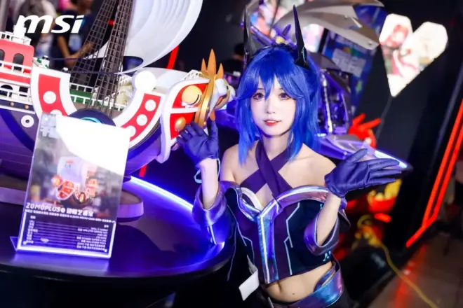 除了电竞体验之外,微星的IP形象在展台掀起阵阵热潮。不仅有魔龙姬、超龙妹和钛舞的Coser小姐姐在现场亲切合影打卡,而且同时在主舞台为所有伙伴带来了MSI WORLD主题曲《be your micro star》的舞蹈。