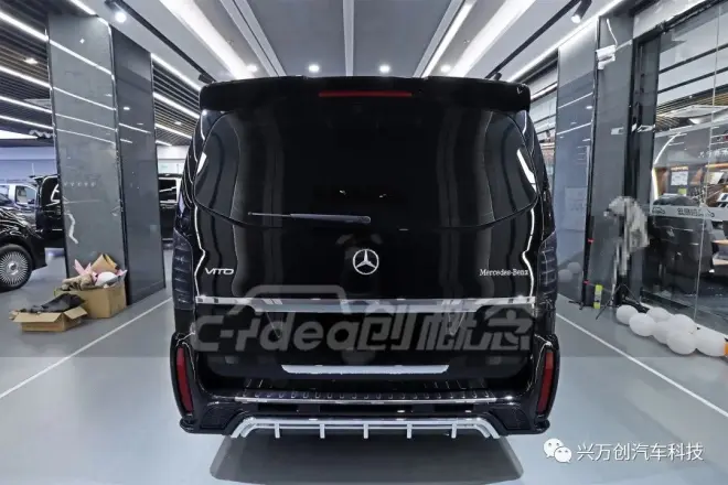 奔驰威霆改装后从前脸看,整体采用迈巴赫第三代前后包围,三叉星立标,前进气格栅采用直瀑式中网,三道流水大灯及熏黑跑马流水尾灯,整体彰显出了时尚与豪华感。对于奔驰威霆的定义向来是你说了算,看外观整车的气场都有了一个档次的提升,现在我们一起来看看内饰吧。