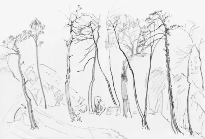 我很少见过像正杰这样用功的人。在专业方面,他全无取媚而图利的虚矫之气,信奉勤能补拙,水到渠成。他敬业乐群,不曾落下画院组织的每一次釆风,平日里没事时自己也是各地乱跑。朋友圈中常见他晒出的风景照,也时见他被别人抓拍下的样子,大多表情认真,用志不分,憨厚而又笃实。我是相信的,相信他确实是在专心作画。他出去游玩时往往地不虚至,图稿盈筪。他也爱写一些旅行心得,记录新知与旧闻、趣事及个人观点,有些话头还挺尖利。他经常提及家乡,笔下的台州,充满乡愁。