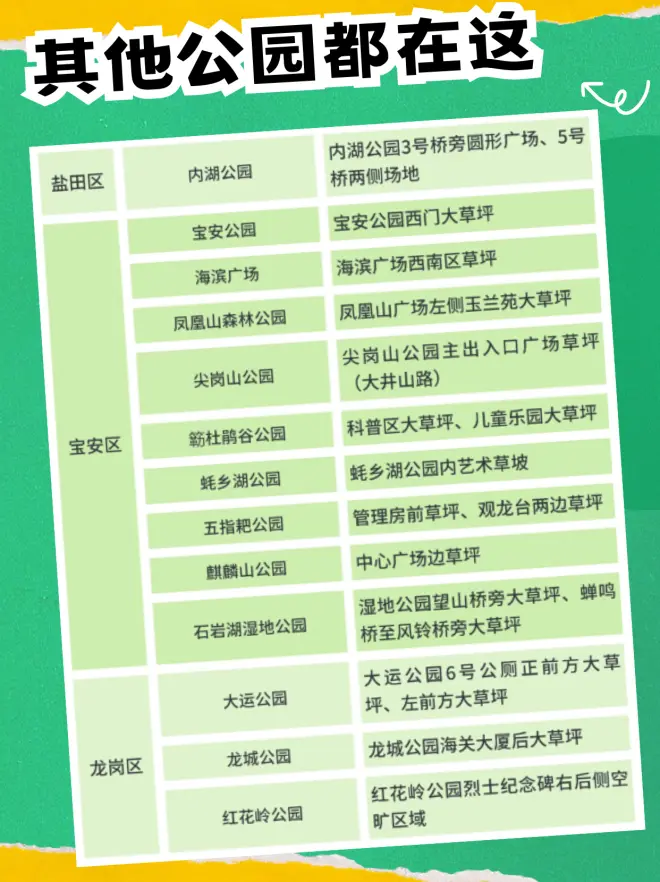 P2~P8梳理了深圳可以搭帐篷的41个公园及划定区域,建议想要去露营的提前保存好这篇攻略,约上小伙伴选择心仪的公园一起去体验户外露营的美妙吧~