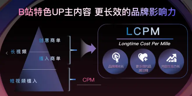 在年前AD TALK BILIBILI营销伙伴大会上,B站提出了一个新的关键词——LCPM(longtime-CPM),指的是适合中长视频的品牌曝光度量衡。