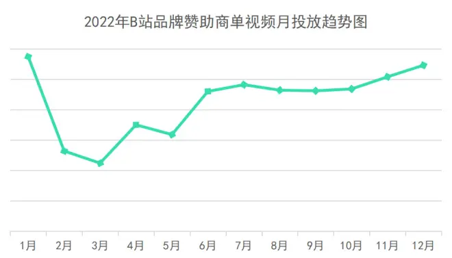 整体上看,B站品牌赞助类商单视频投放量1月最高,3月起整体呈上升趋势。