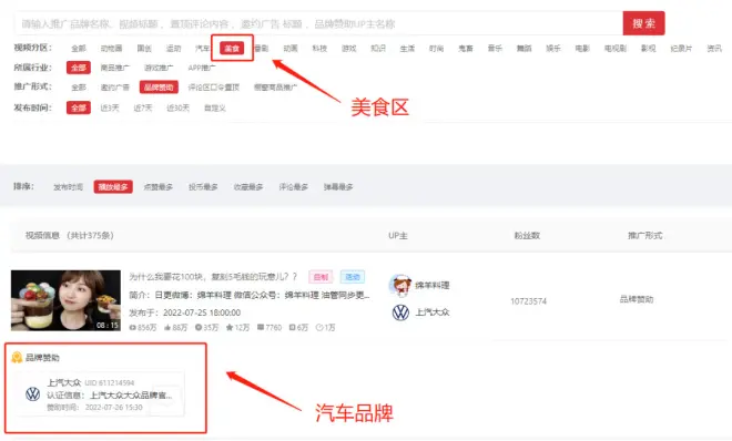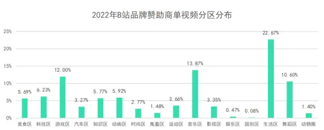 火烧云数据对2022年B站各分区品牌赞助类视频数据进行了统计: