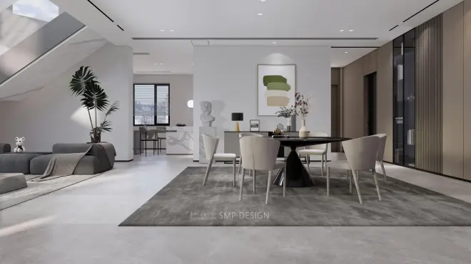 在空间的色彩搭配比例上看,背景色、主配色、点缀色三者之间应按照7:2.5:0.5的黄金比例进行搭配,即背景色占70%,主配色占25%,点缀色约占5%左右。遵从空间色彩搭配的黄金比例,可以保证色彩主次分明,视觉呈现上能够突出重点,避免让居者产生杂乱感和审美疲劳。