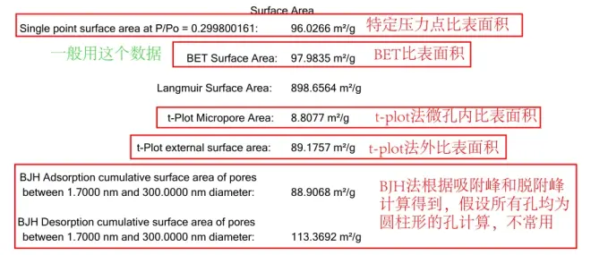 1、关于比表面积输出报告的一些数值的简单解释及一些名词代表内容和数值选定如下图