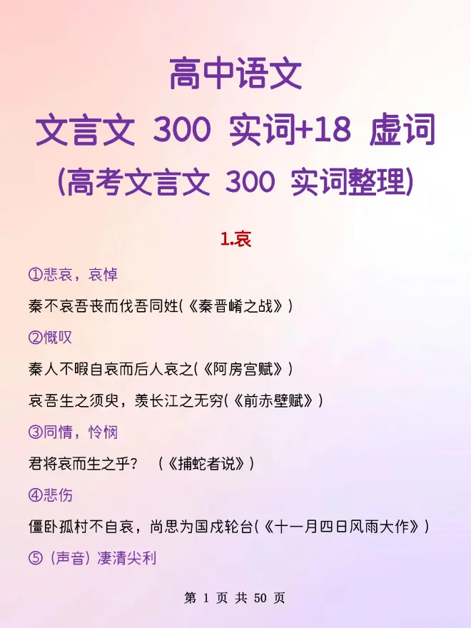 因此,为了帮助大家提升成绩,学姐今天整理了高中语文——文言文300实词+18虚词最全总结归纳!