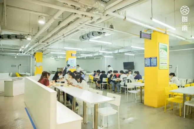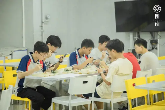下课铃声一响,马上拉着新饭搭子冲向食堂。图南的菜很好吃,阿姨给的菜也很多,每天有不同的菜品,天天都像在解锁美食盲盒。我们都是珍爱粮食的宝宝,要比吃的,自认没输过,基本每天都能光盘,感觉三个星期能胖五斤。幸好图南有健身房,明天立马去减肥。