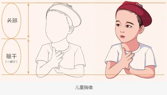 小玲儿手绘案例由成人和儿童漫画头像组成,绘制儿童漫画头像与绘制成人的不尽相同。儿童的面部更多的是饱满细腻甚至婴儿肥的感觉,整体显得肉嘟嘟的;大多数儿童的大眼角还没有完全长开,再加上双眼皮没有完全形成,因此眼睛显得更圆、更可爱;儿童的手臂也多是短粗状。而成人的面部轮廓棱角清晰,五官成熟,且手臂相比儿童来说更修长。