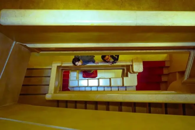 最后一话中两人来到的第一站是于1918年(大正7年)竣工的大阪市中央公会堂,这个建筑是基于岡田信一郎的设计方案辰野金吾和片岡安落地建成的,它新文艺复兴风格的外观给人一种威严的感觉。楼内的集会室有着高高的天花板、细致的装饰、华丽的柱子……宽敞到你很难相信这是在大楼内部的空间。