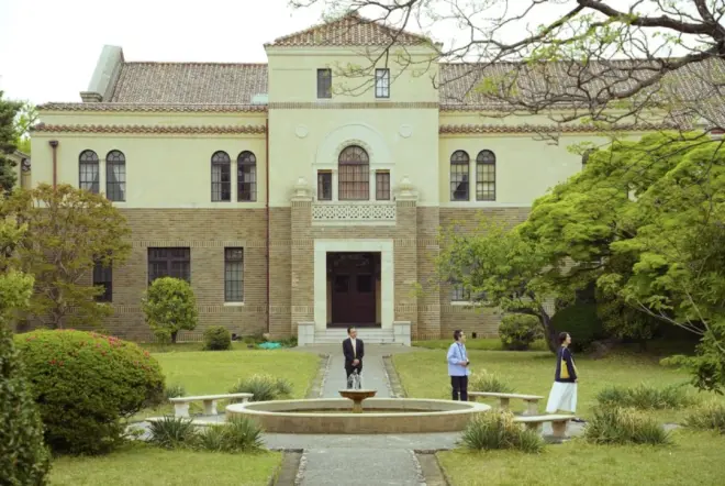 这天,两人前往神户女学院,这是一所建于1933年(昭和8年)的女子学校,它是由美国建筑师威廉·梅雷尔·沃里斯设计。庭院周围有四栋建筑,每栋建筑都有走廊相连,即使下雨天也可以自由进出。建筑物统一为西班牙传教士风格的建筑风格,校园内布满了三叶草的标记,神户学院的校徽上也有这些标记,所以来访时不妨留意下是否能遇到幸运的三叶草吧。