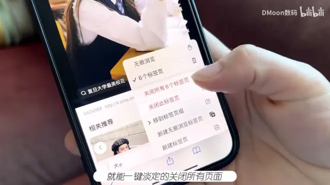 长按右下角——关闭所有标签页(长按无痕浏览)