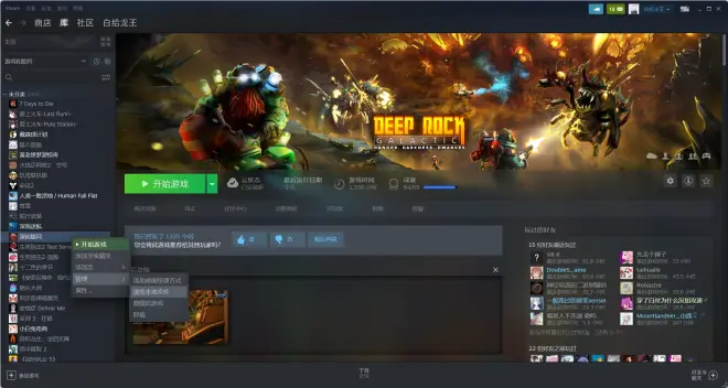 在steam的库页面右击深岩银河
