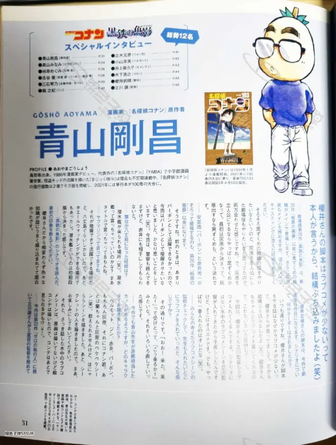 【访谈翻译】Cinemagazine 2023 原作者·青山刚昌访谈[M26黑铁的鱼影]