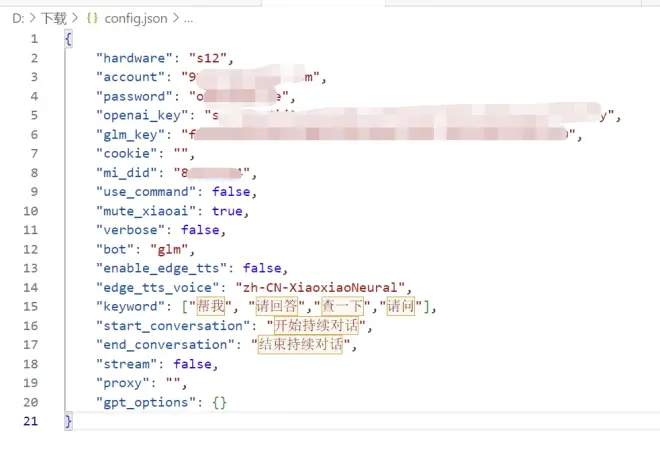 ,填写完成后如下图,这个文件,在yihong0618/xiaogpt是有的