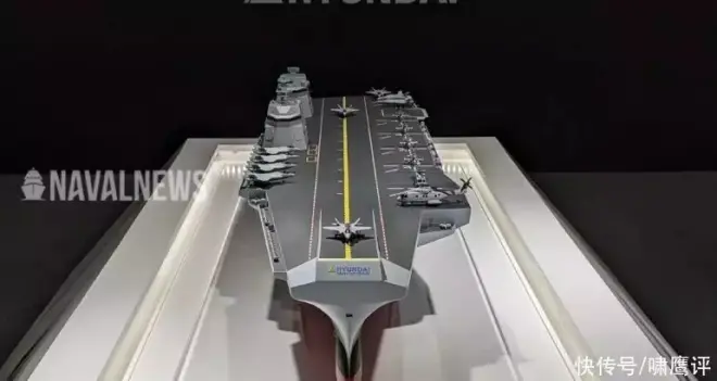 性能强于女王,韩军工展出7万吨弹射航母模型,假想敌可能是日本