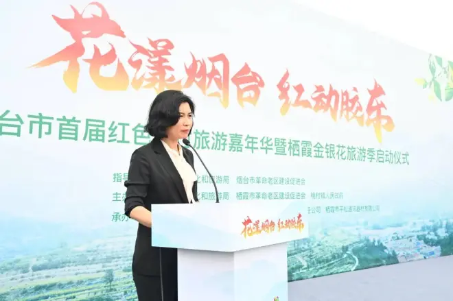 上午9时许,在少儿古筝《将军令》激昂有力的乐曲声中,“花漾烟台 红动胶东”烟台市首届红色乡村旅游嘉年华暨栖霞金银花旅游季启动仪式正式拉开帷幕。开幕式上,栖霞市委常委、宣传部部长、副市长刘海华表示,栖霞是胶东革命老区,红色文化资源众多。近年来,栖霞市深入推进红色文化基因与美丽乡村建设成果深度融合,先后开发培育多条红色文化研学旅游线路,启动了红色文化人才培训基地建设项目,抢修了一批革命历史建筑,打造了一批像国路夼、后许家这样的乡村红色文化研学基地,新规划的“重走抗大路”党性教育现场教学线路提升工程正在快速推进,这些红色项目、工程、基地、线路,将成为胶东红色文化片区建设的重要组成部分。